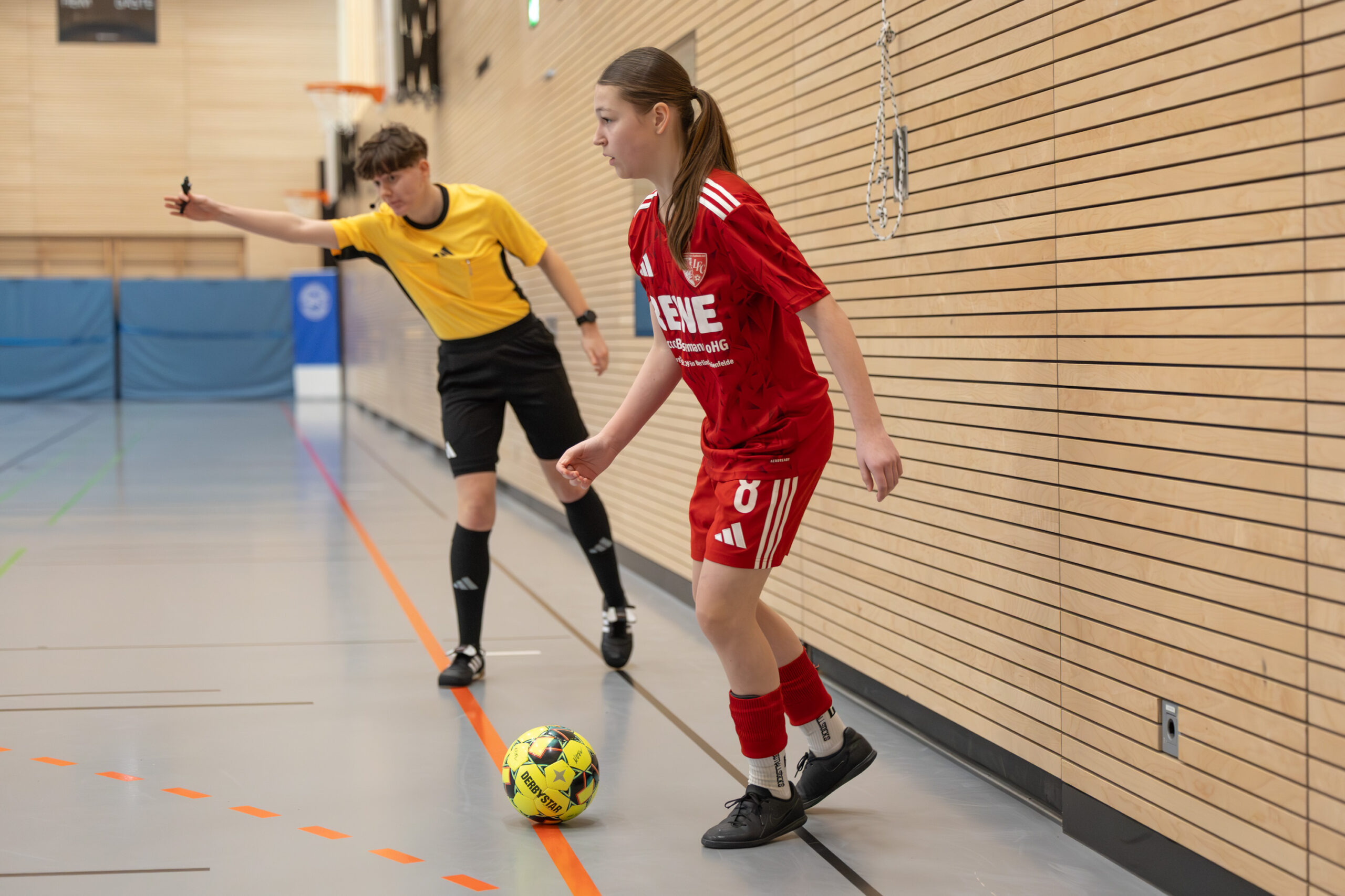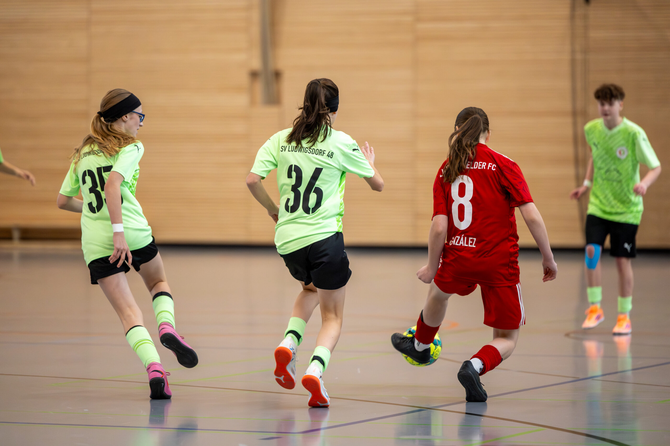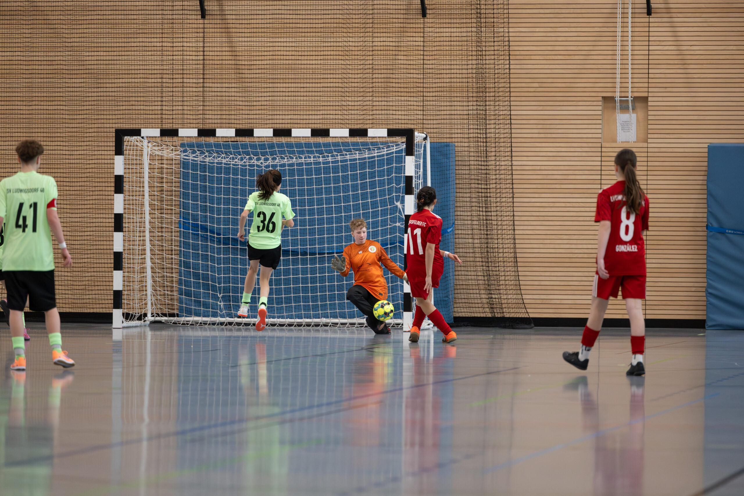 Die Spiele haben eindrucksvoll gezeigt, welche Parameter gefordert sind: Intensives Anlaufen, sofortiges Umschalten, hohe technische Sicherheit unter Druck. Hinzu kommt eine physische Komponente, die insbesondere in der Halle spürbar ist: kurze Wege, permanente Zweikämpfe, kaum Erholungsphasen. Wer als deutlich jüngstes Team des Turniers körperlich weniger Wucht mitbringt, muss das über Laufleistung, Spielintelligenz und zusätzlichen Aufwand kompensieren. Das kostet Kraft und genau diese zusätzliche Investition forderte über den Turniertag hinweg sichtbar Tribut.