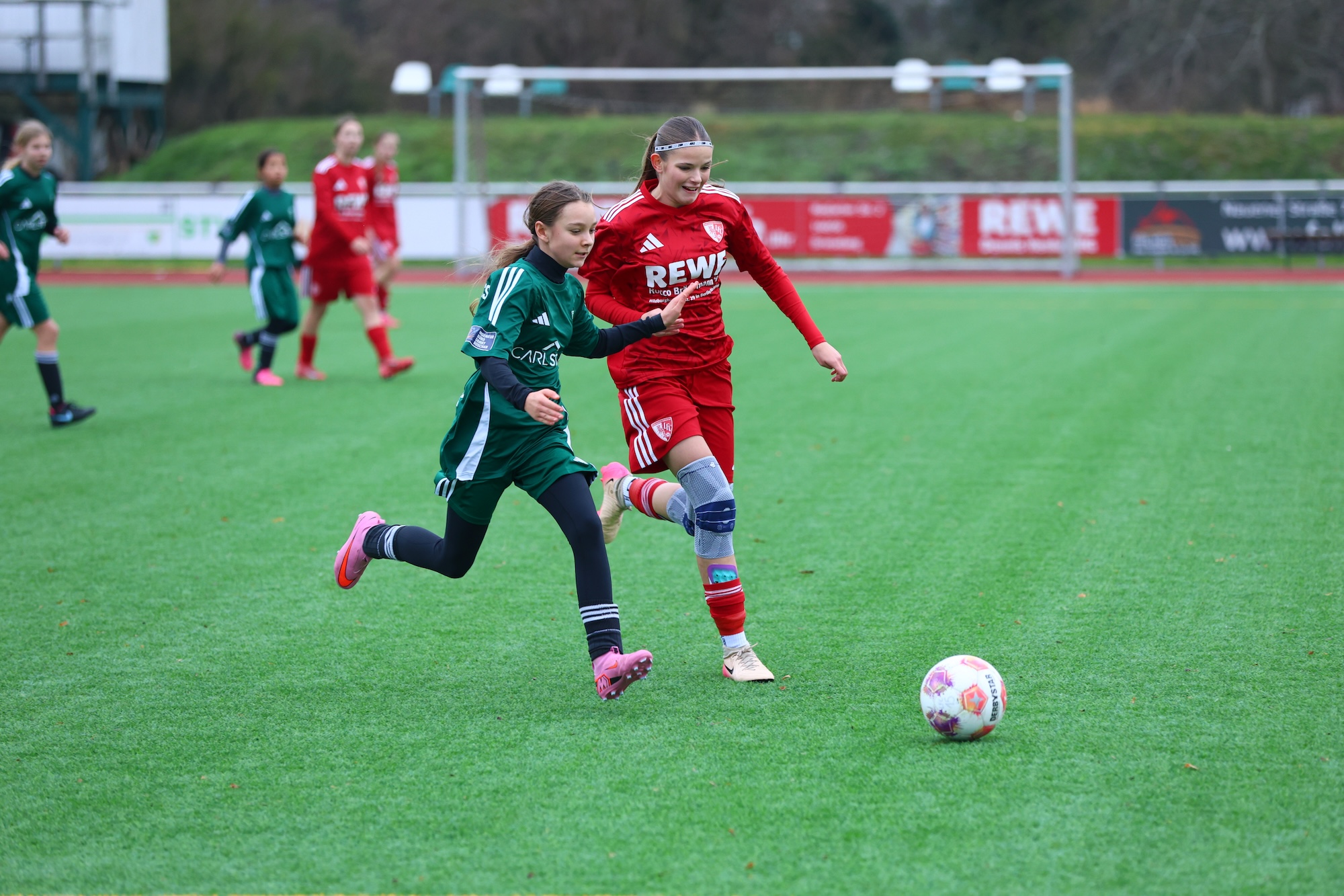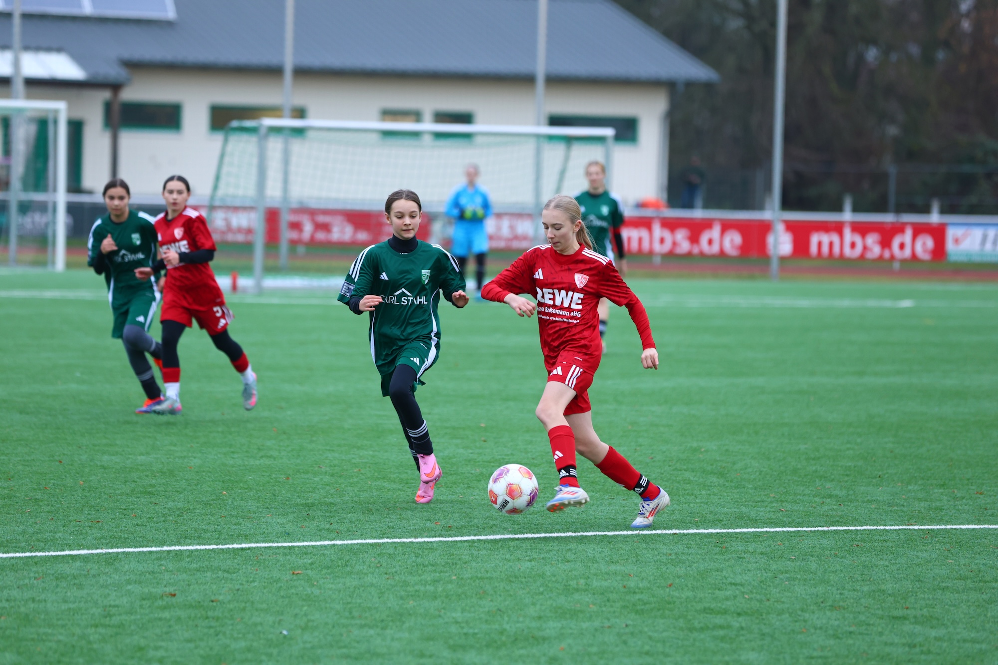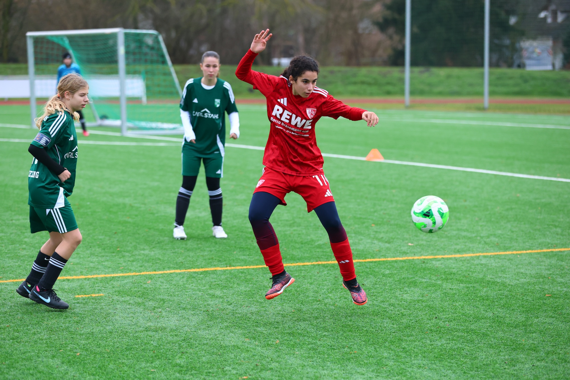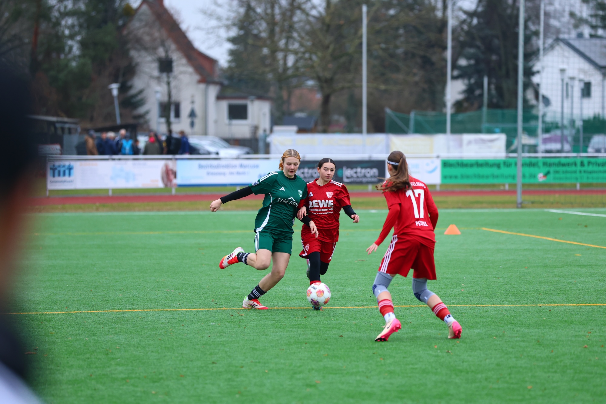 Im Heimspiel gegen den Tabellenzweiten aus Potsdam erwischten die Gäste den besseren Start. Bereits nach drei Minuten kam Turbine zur ersten großen Möglichkeit. Doch unsere C2 zeigte sich unbeeindruckt und erarbeitete sich zwei riesige Chancen durch Mia H. und Lucie. In dieser Phase spielte der LFC mutig, kombinierte gut im Mittelfeld und hielt energisch dagegen.