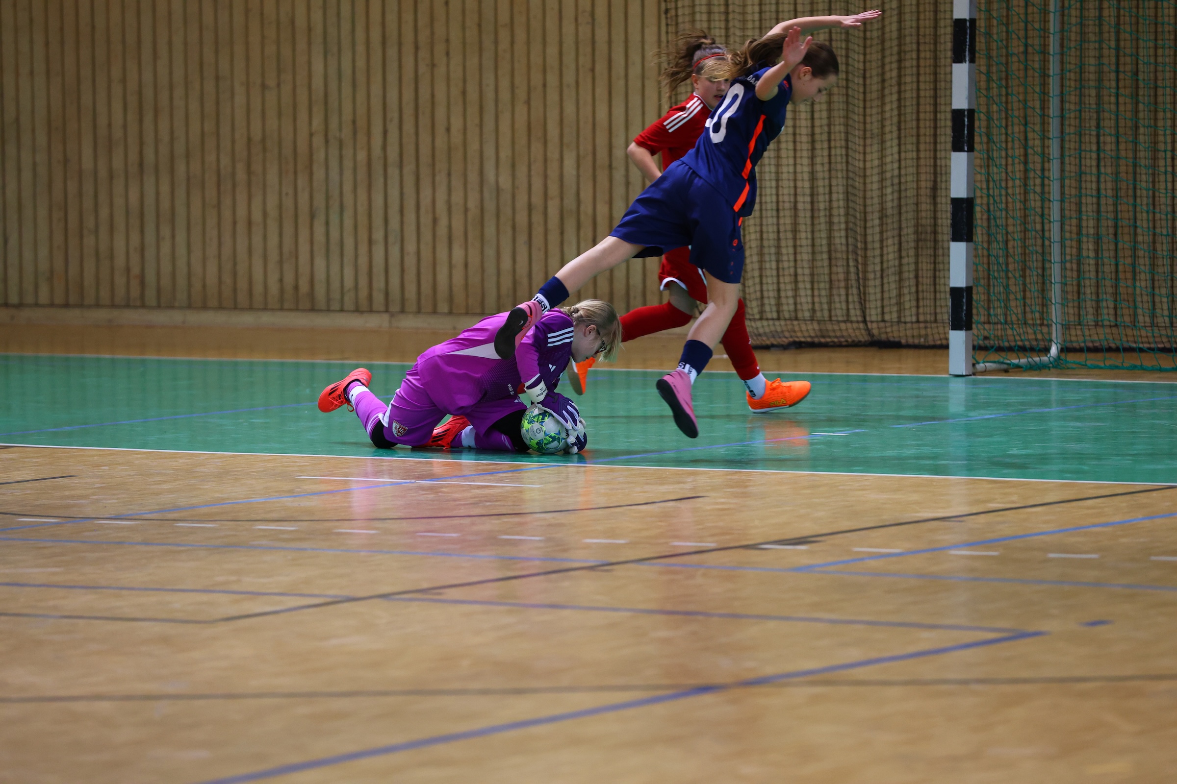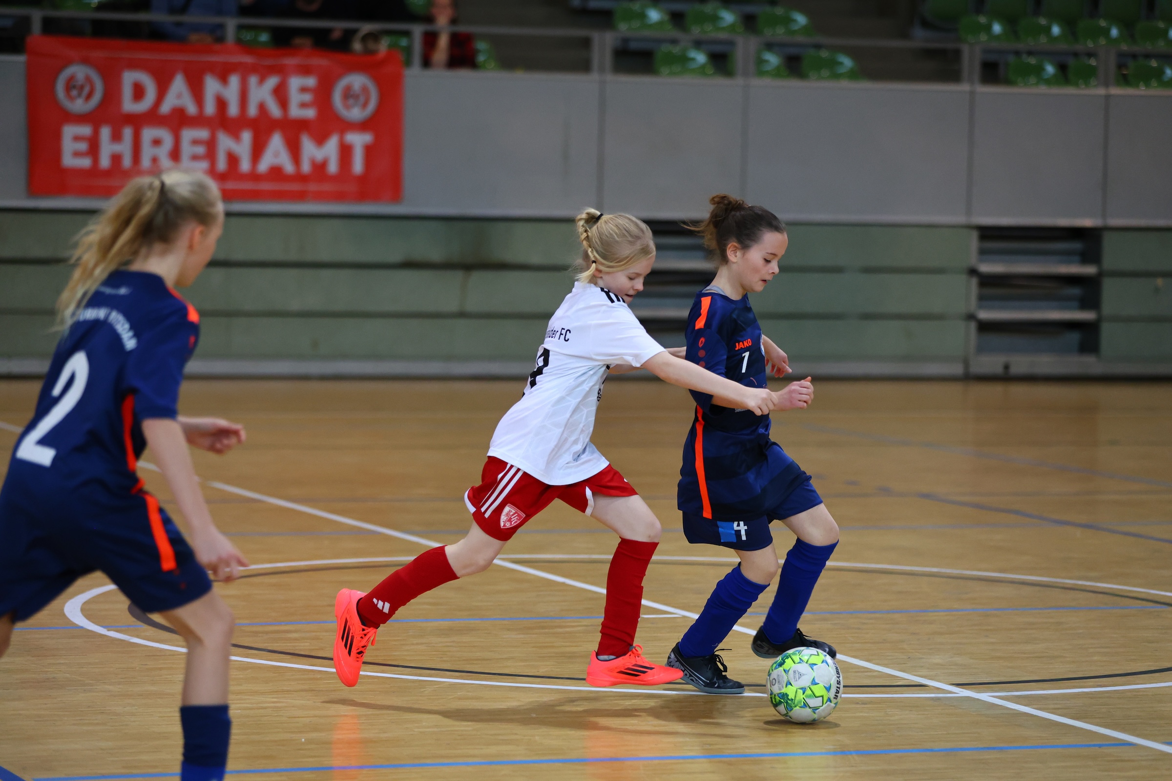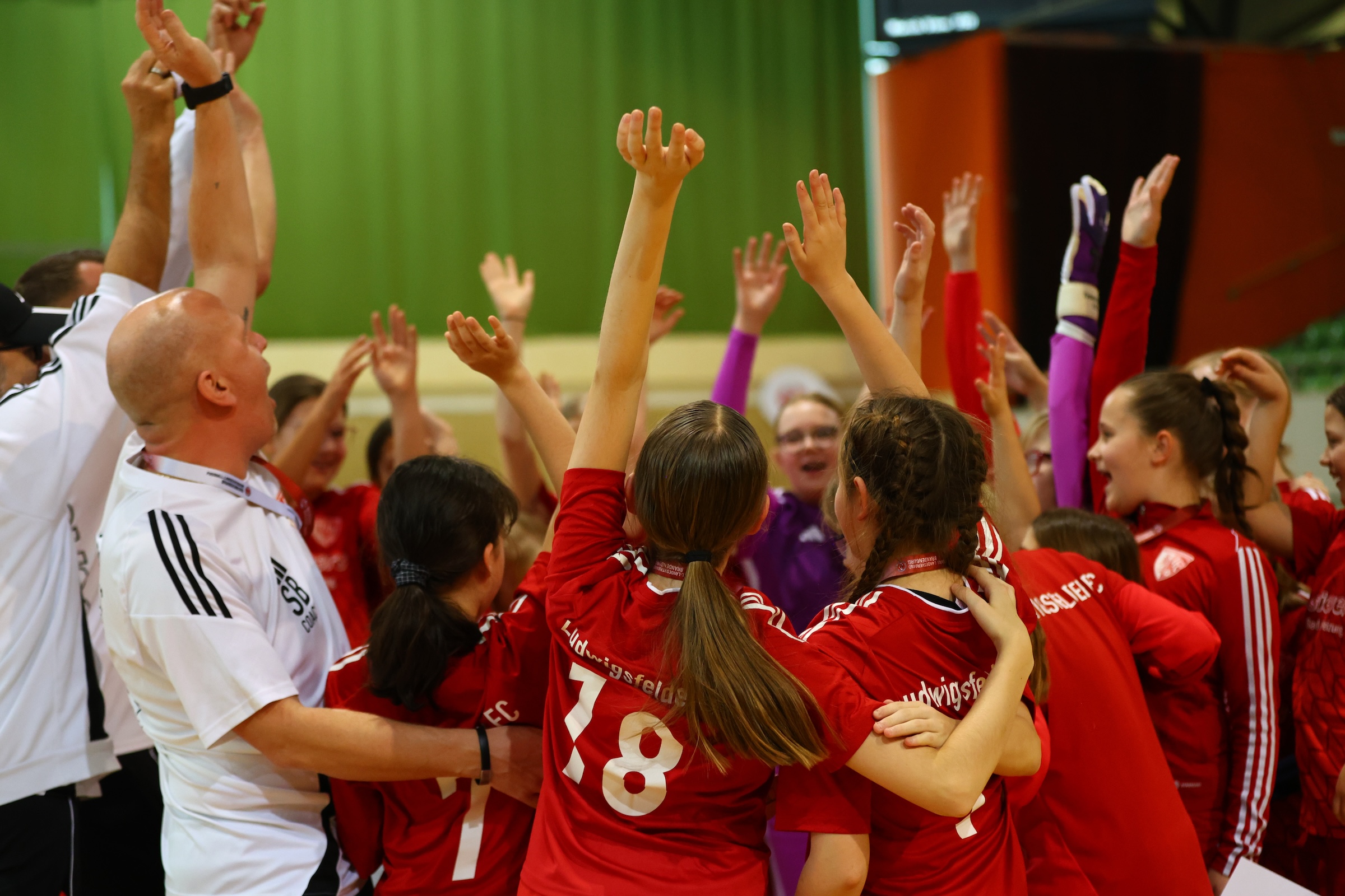 Am Ende ist jedoch festzuhalten, dass man von keinem Gegner aus der Halle gefegt wurde und auch die Ergebnisse bei Weitem nicht so deutlich waren, dass man von einem Klassenunterschied reden muss. Dem Trainerteam war klar, dass unsere zweite Vertretung im Teilnehmerfeld extrem schwere Gegner haben würde. Dennoch wollten wir den Mädchen, die so fleißig arbeiten und trainieren, genau dieselbe Bühne bieten, die auch die Topteams genießen durften: Rundumtribüne, Musik, laute Fans, Trommeln, LED-Leinwand mit Torschützen und Mannschaftsfotos. All das sollten auch unsere D2-Mädchen genießen – all das haben sie sich verdient.