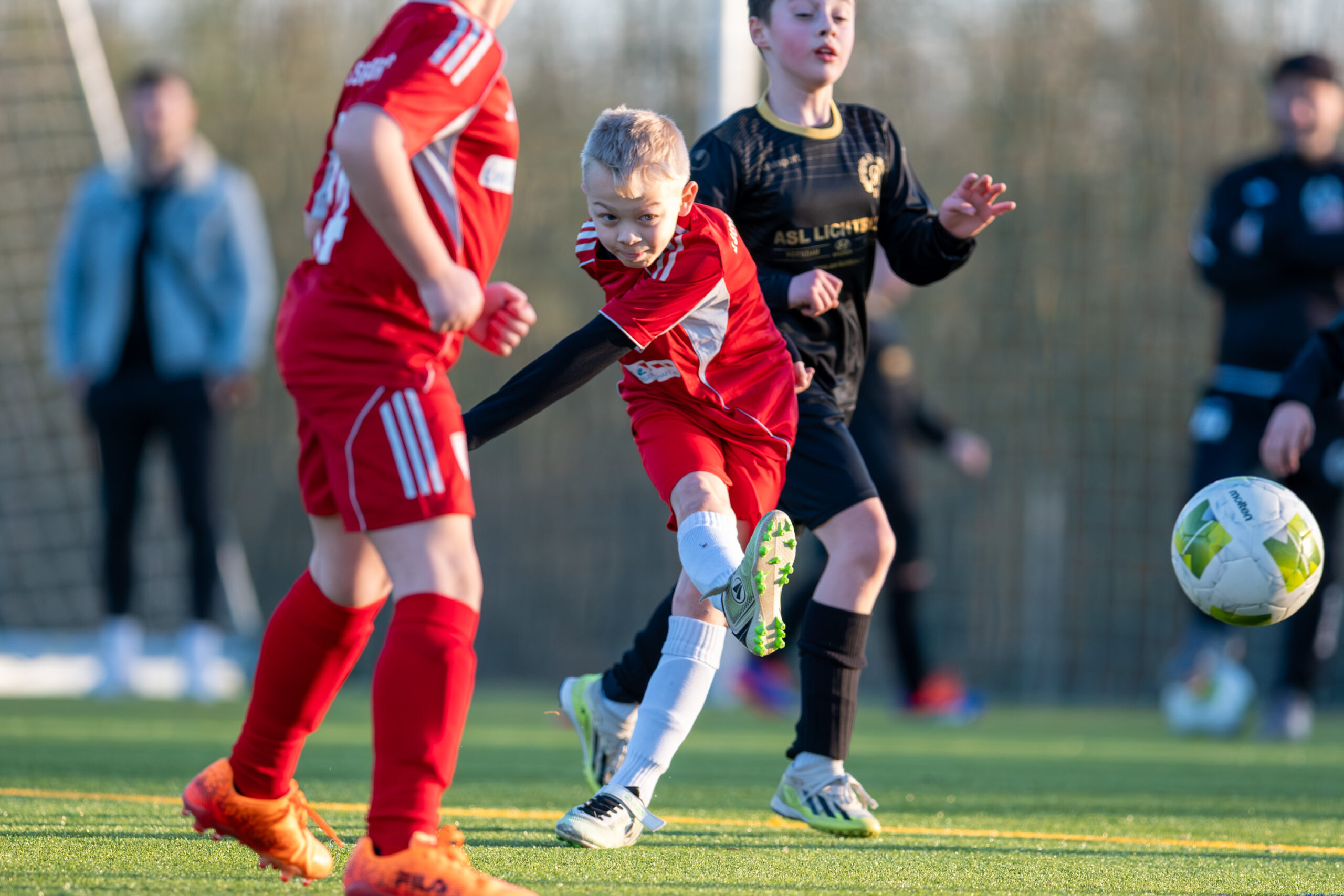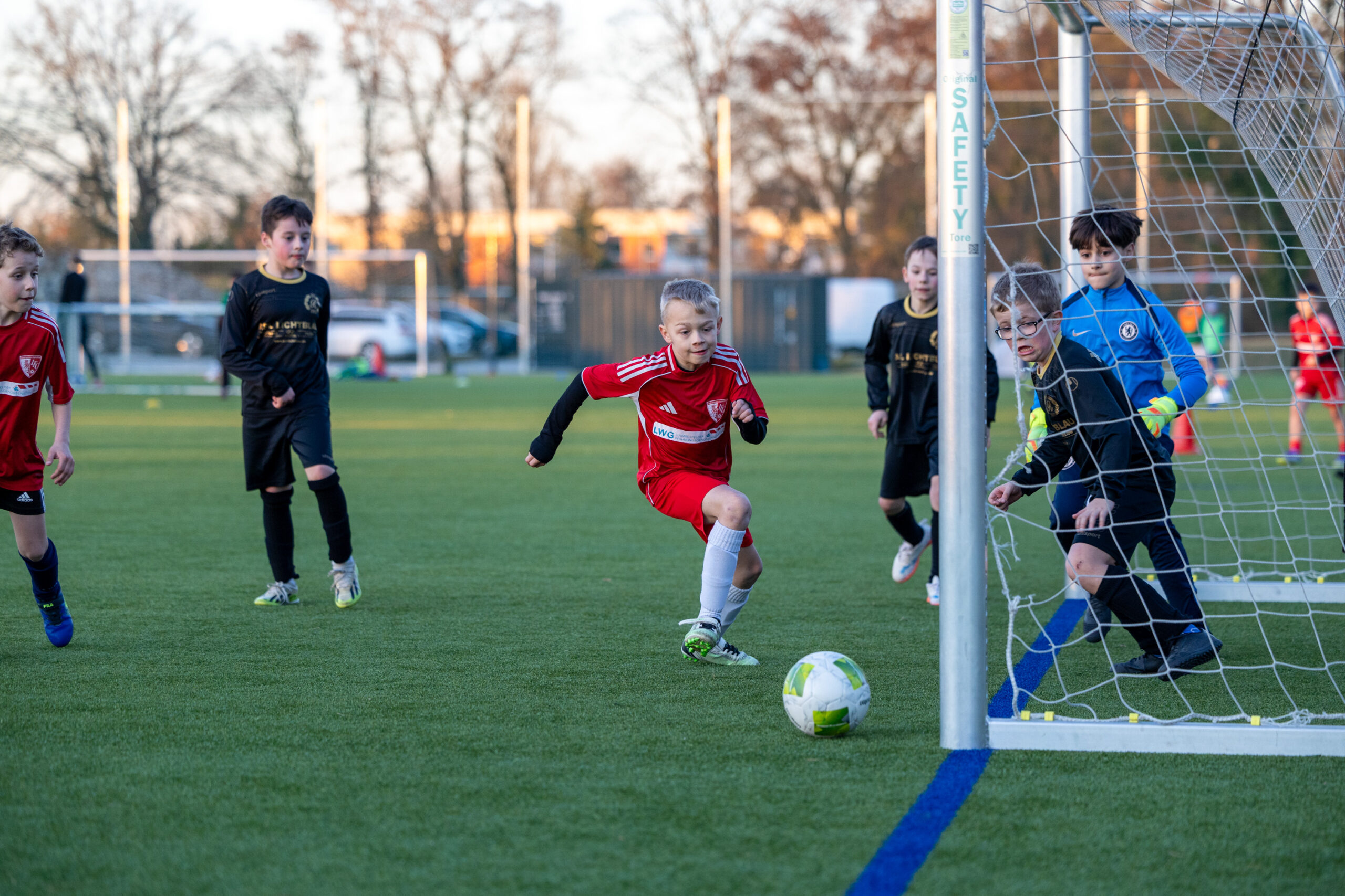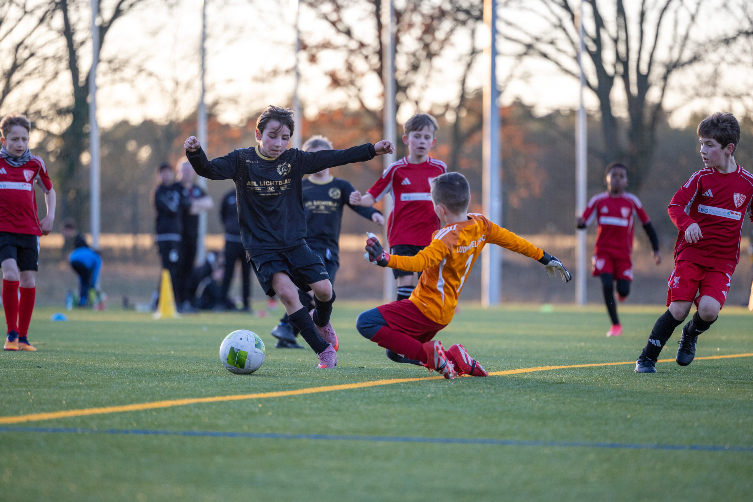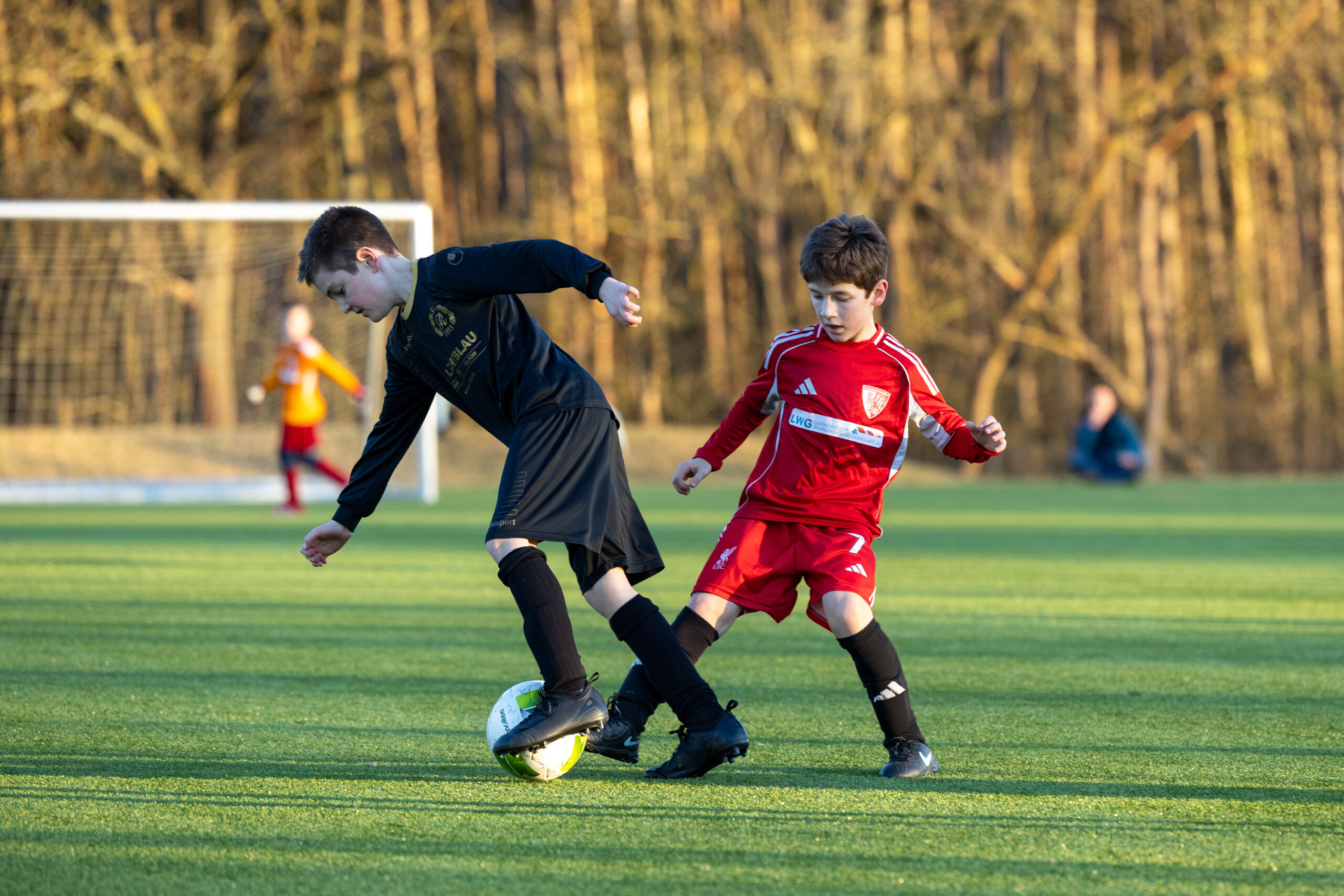 Auch im zweiten Viertel zeigte unsere E3 ein gutes Spiel und belohnte sich diesmal früh mit dem 0:1. Kurz darauf unterlief uns jedoch ein Fehler im Aufbauspiel, den die Gastgeber eiskalt zum Ausgleich nutzten. In den letzten Minuten konnten wir uns dann doch noch belohnen: Nach einem überragenden Spielzug fiel das 1:2, womit dieses Viertel an den LFC ging.