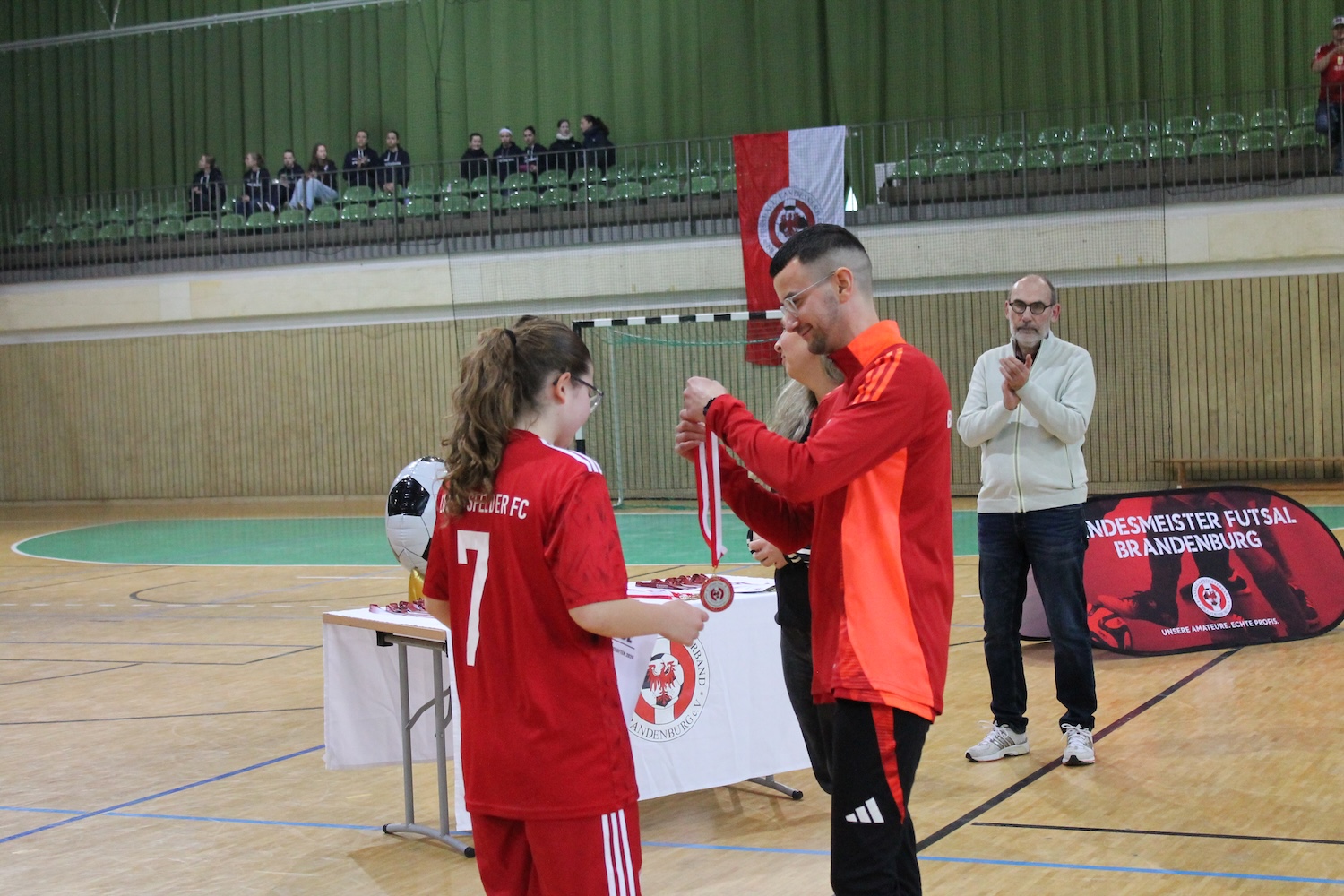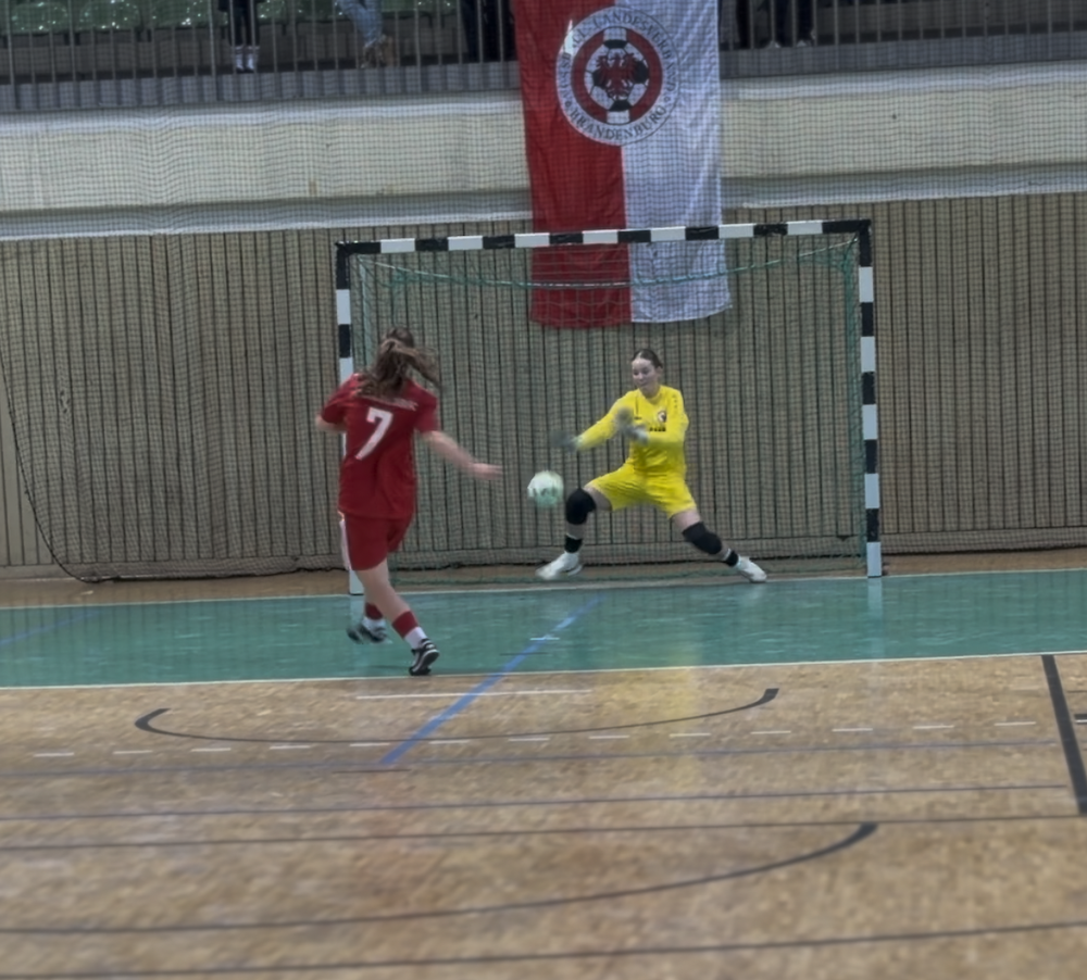Im Halbfinale wartete mit Energie Cottbus der nächste große Name. Es entwickelte sich ein intensives, körperliches und zeitweise hitziges Spiel. Die Schiedsrichter hatten einiges zu moderieren, verteilten Karten, hielten die Partie aber jederzeit im Griff. Auf dem Feld zeigte Ludwigsfelde genau das, was Futsal ausmacht: Leidenschaft, Laufbereitschaft, gegenseitiges Absichern. Jeder ging an seine Grenze. Der Lohn war ein knapper 1:0-Sieg, den Torhüterin Fee in der Schlussphase mit mehreren starken Paraden festhielt. Der Einzug ins Finale war geschafft.